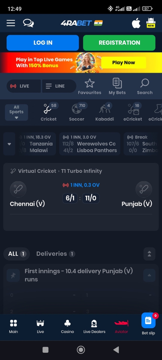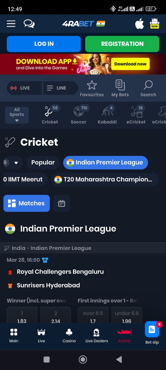 - Run the mobile application, log into your 4rabet cricket betting account, and have fun!